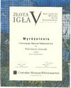 Wyróżnienie przyznane przez firmę ARIADNA z Łodzi w konkursie "V Złota Igła 2011"